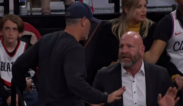 根据现场比赛画面显示,邓顿跟球队一起奔赴快船,在比赛现场,他被拍到和球队总经理在观众席激烈交流的画面!